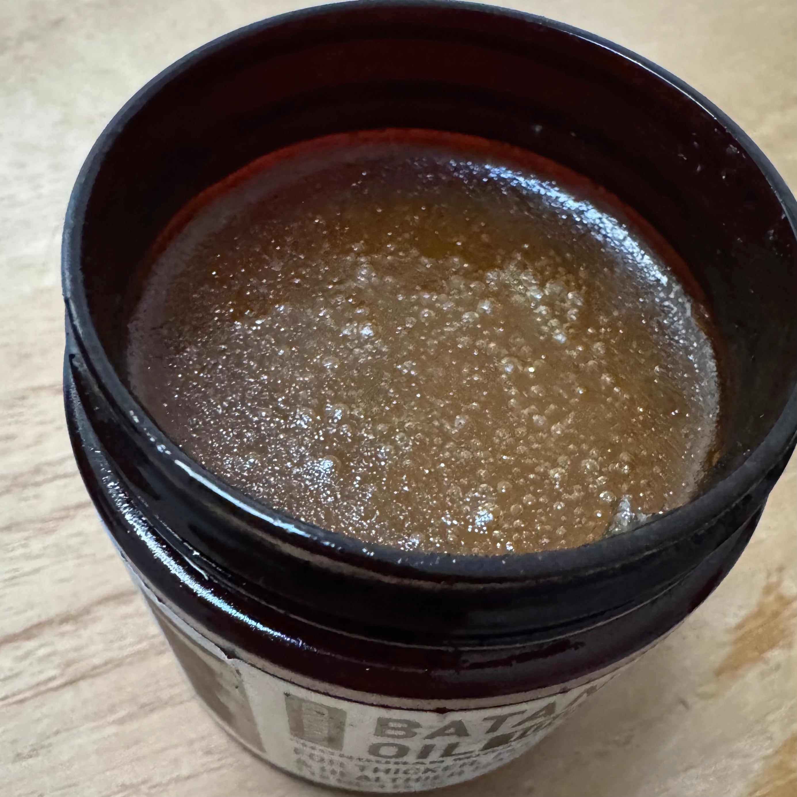 - Golden-brown paste with tiny natural grains